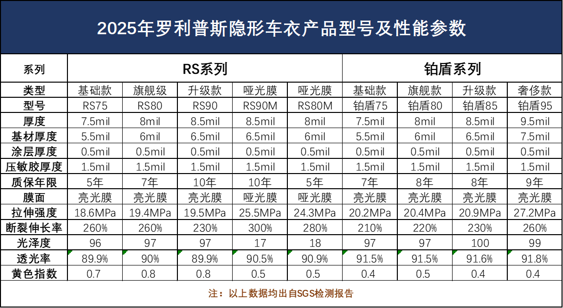2025年羅利普斯隱形車(chē)衣型號(hào)及性能參數(shù)(全)!
