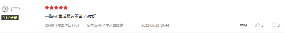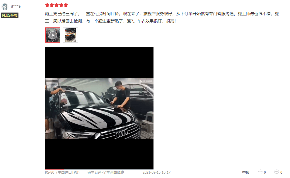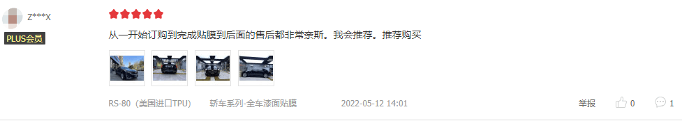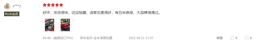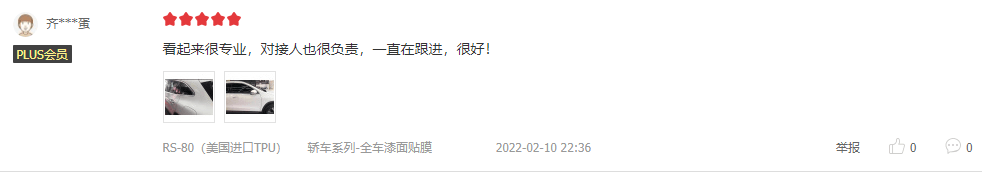 羅利普斯大品牌,真tpu,送護(hù)理液,效果完全超出期望值,施工兩天完成,速度非常快,貼膜師傅非常仔細(xì),質(zhì)保五年送修補(bǔ),很滿意的一次購物