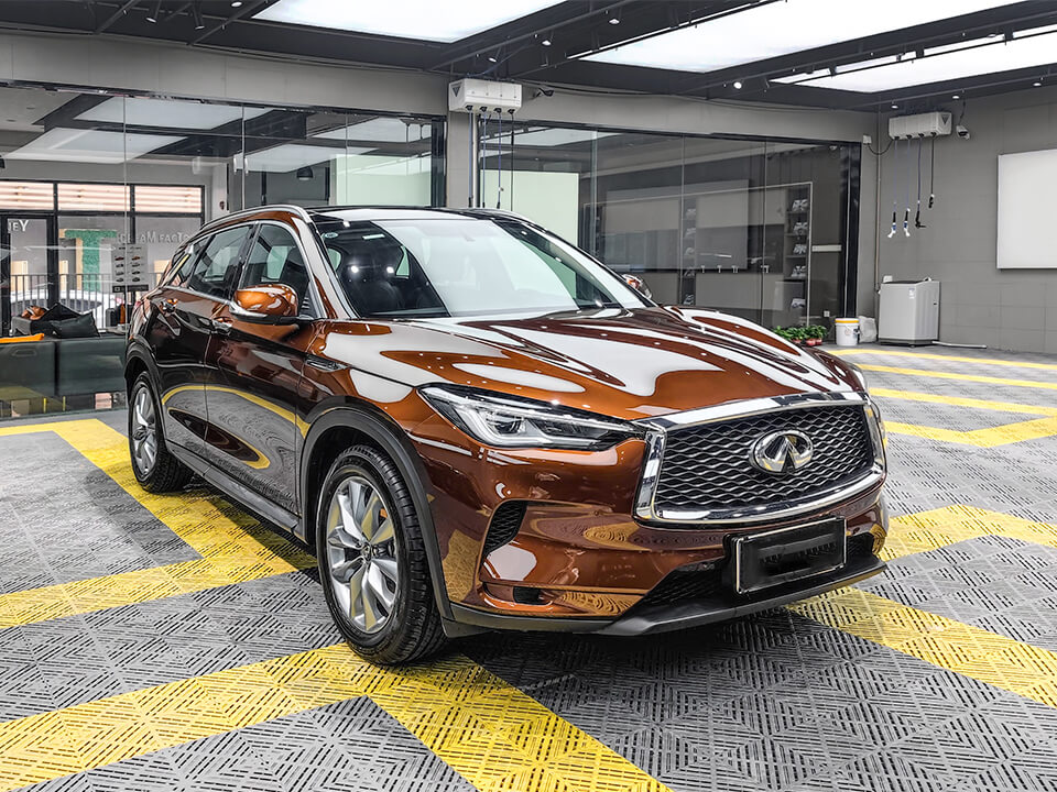 整個英菲尼迪QX50貼啞光車衣的無塵施工間