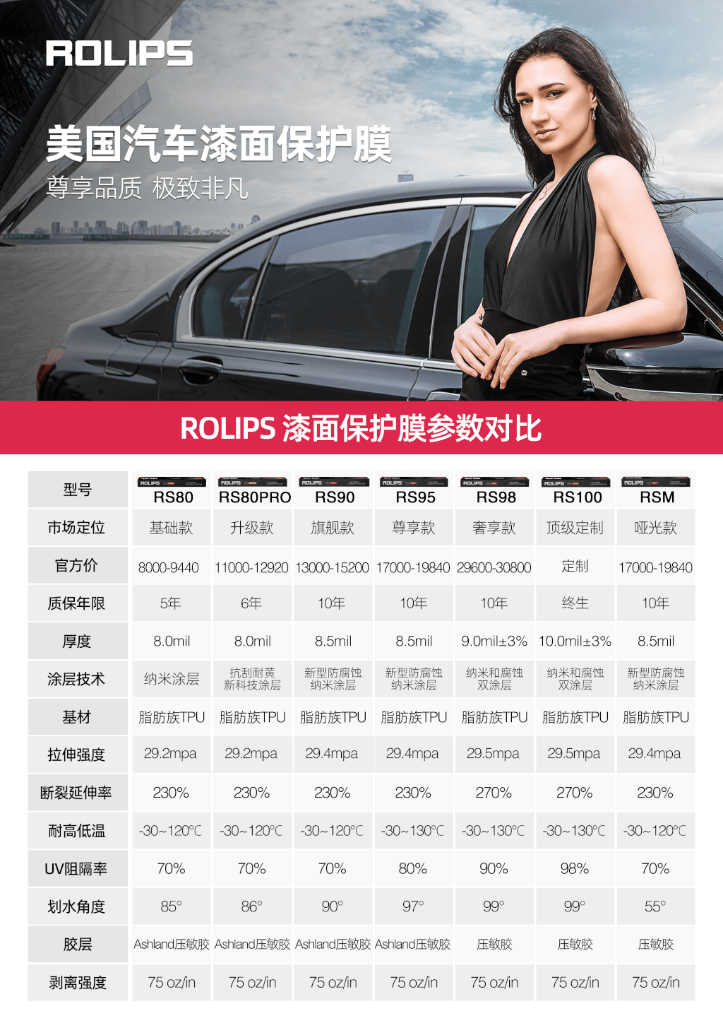 羅利普斯(ROLIPS)成立于2009年,總部于美國特拉華州,專注高端隱形車衣研發(fā)和生產(chǎn),公司擁有優(yōu)秀的研發(fā)團隊,和技術(shù)先進的實驗室。經(jīng)過10多年努力,羅利普斯在涂層技術(shù)和納米涂布工藝方面均取得不錯的成績,并且嚴格控制成本,幫助車主選擇到質(zhì)量不錯,價格又實惠的隱形車衣。