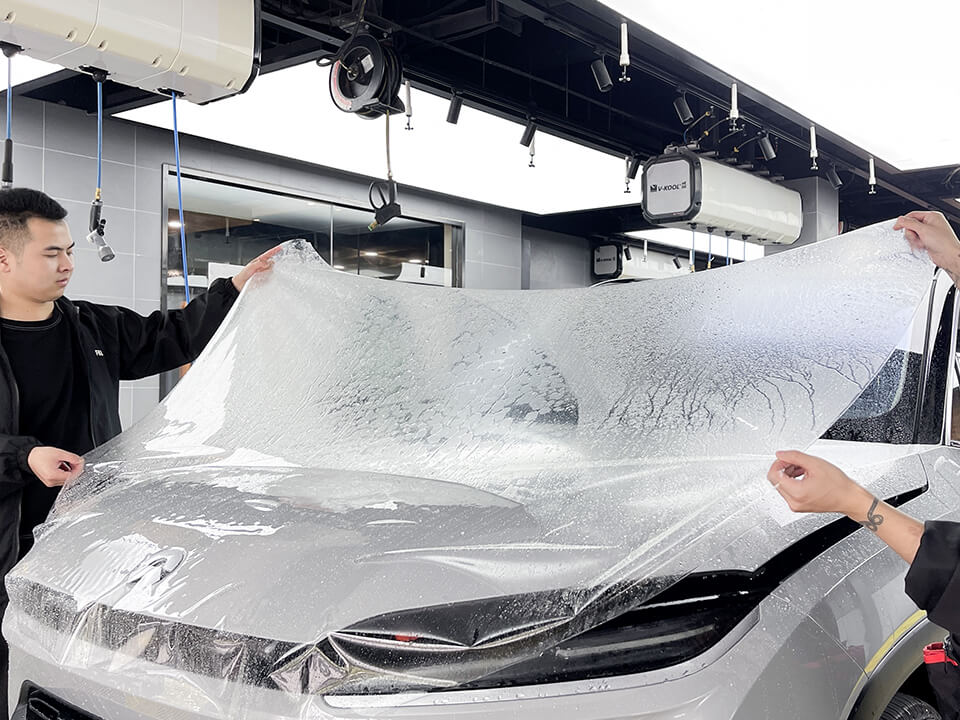 隱形車衣,它是一種高性能新型環(huán)保薄膜,被廣泛應(yīng)用于汽車貼膜美容保養(yǎng)行業(yè),是透明漆面保護(hù)膜的一種俗稱。具有超強(qiáng)的韌性,裝貼后可使汽車漆面與空氣隔絕,持久保護(hù)漆面。產(chǎn)品材質(zhì)是一種聚氨脂薄膜,含抗UV聚合物,抗黃變,具有超強(qiáng)的韌性,耐磨性不變黃、易粘巾,抗碰撞,裝貼后可使汽車漆面與空氣隔絕,防酸雨、防氧化、抵抗劃傷,持久保護(hù)車子的漆面。