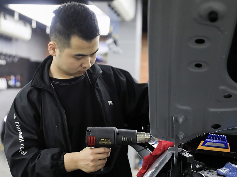 最后注意在貼完膜后一周要避免淋雨洗車,一周后要到店檢查是否出現(xiàn)翹邊起泡情況,以便能夠及時的處理,同時以后也要定期對車衣保養(yǎng),延長使用壽命。