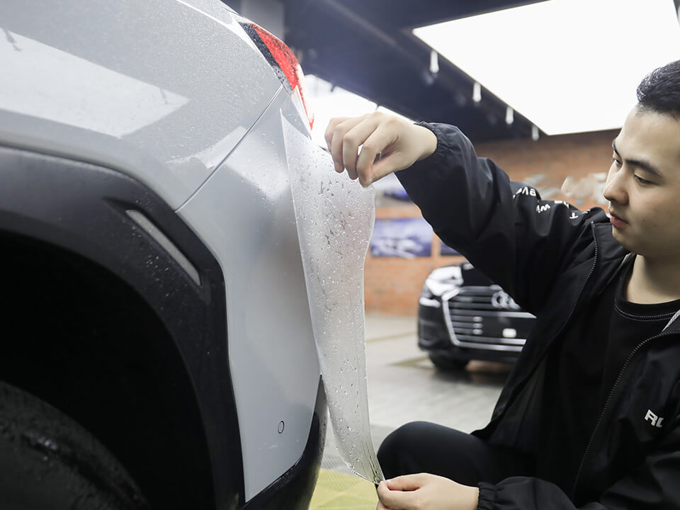一方面要根據(jù)車身量身定制合適的膜,最終保證施工效果美觀,無瑕疵。另一方面要檢查車身是否有損壞部位,記錄并反饋給客戶,以免后續(xù)產(chǎn)生不必要的誤會。如果車身有過補漆,則不能貼車衣,否則后期撕膜會使漆剝落。